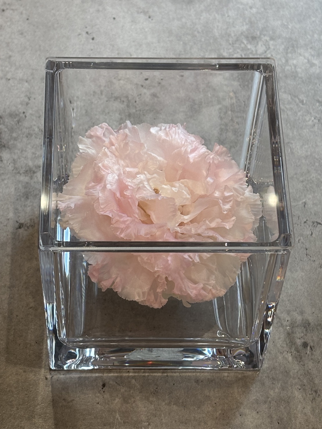 1輪からでもプリザーブドフラワー加工を承ることが出来ますので、お気軽にお問合せください。クリアなガラスに入れた洗練されたデザインのcube glassは、特におすすめです!