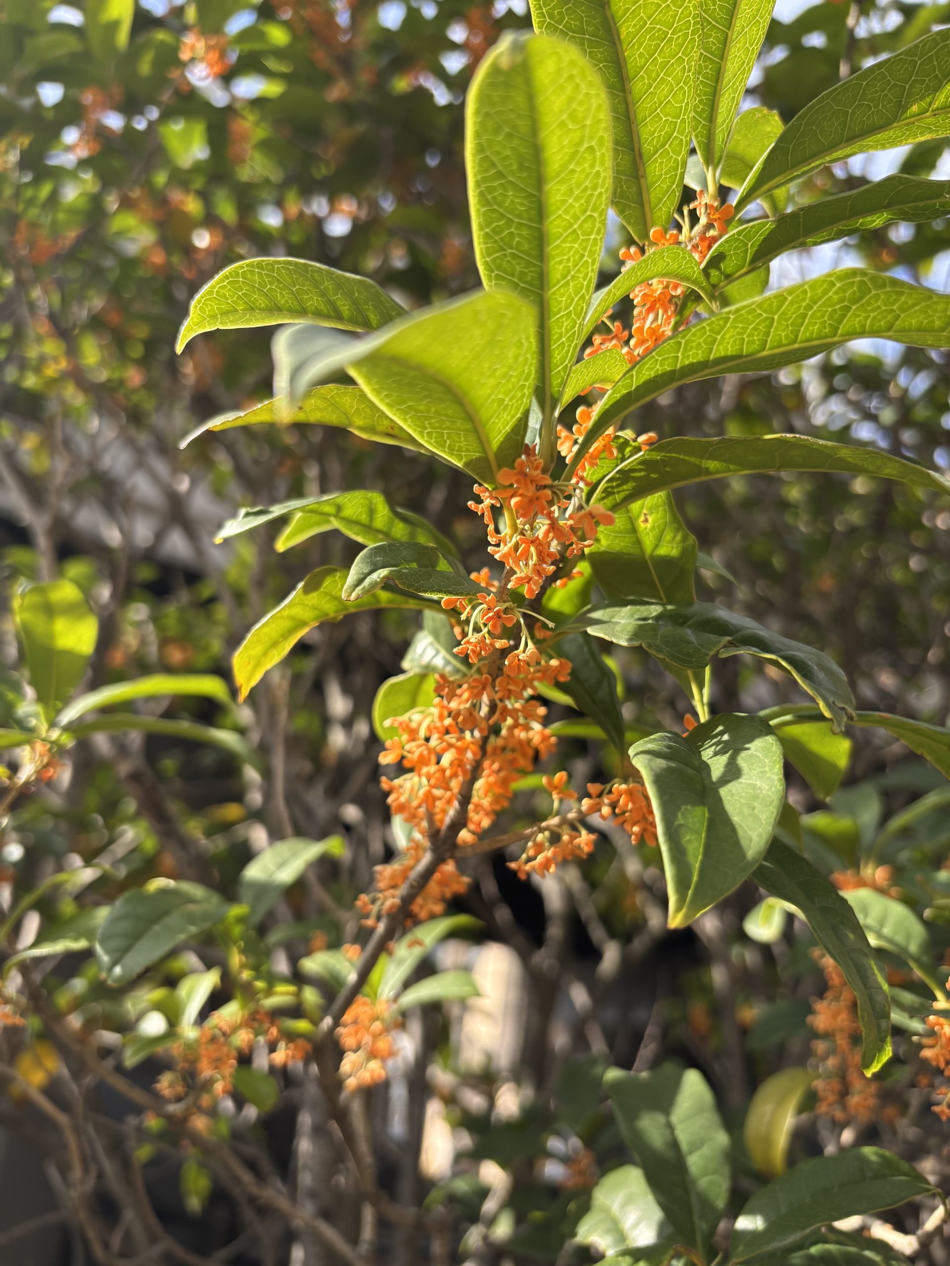 最近、朝夕寒くなり秋を感じます!通勤途中に心が落ち着く懐かしい香りがする場所を見つけました。小さなオレンジ色の花が咲く金木犀の樹です。花びらは通常4枚ですが、5枚の花を見つけると幸運が訪れるそうです。