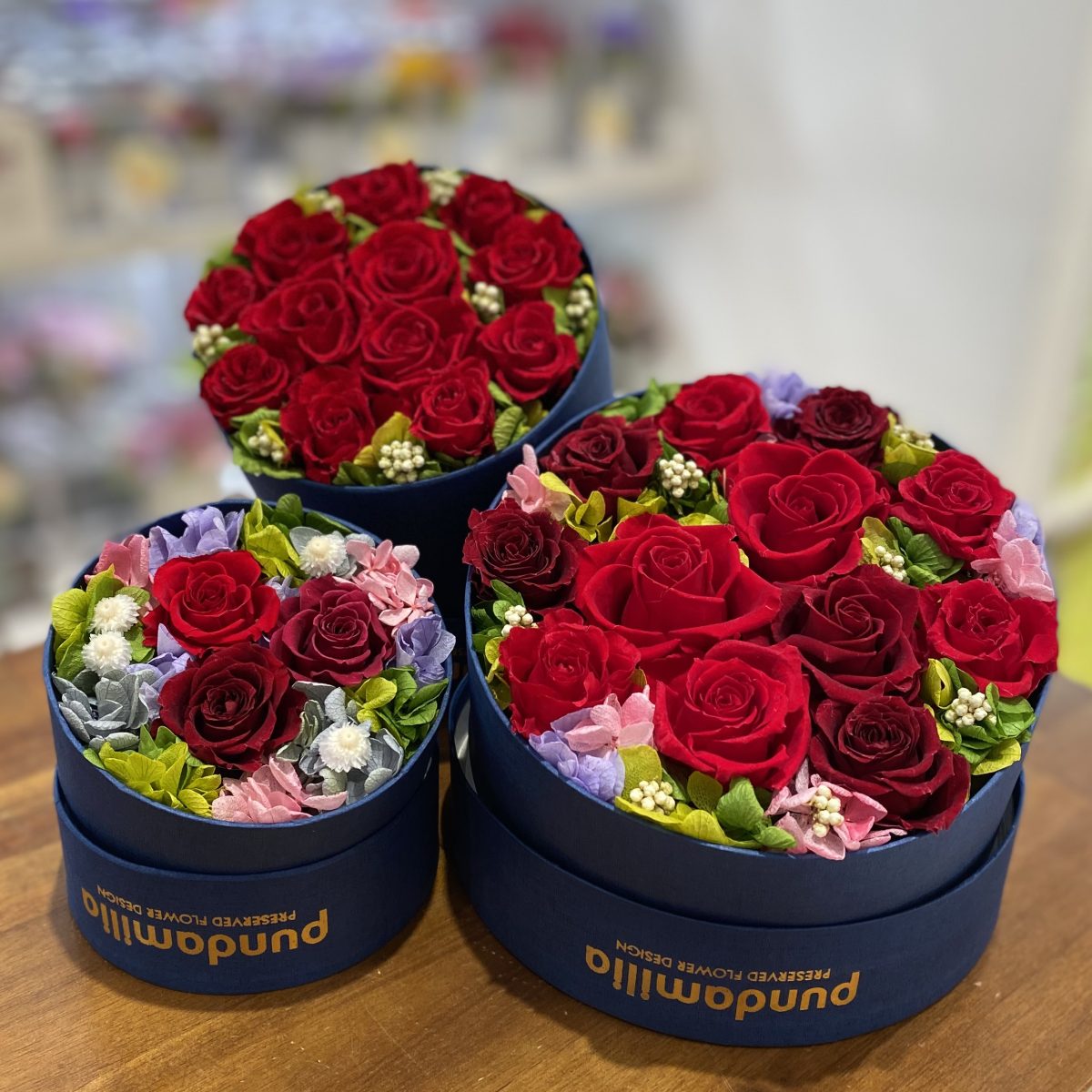 最近、赤系のアレンジが人気です! なぜか、今年の還暦のお祝いを探されていらっしゃるお客様が多く、悩まれたら、やはり赤系にされます。
